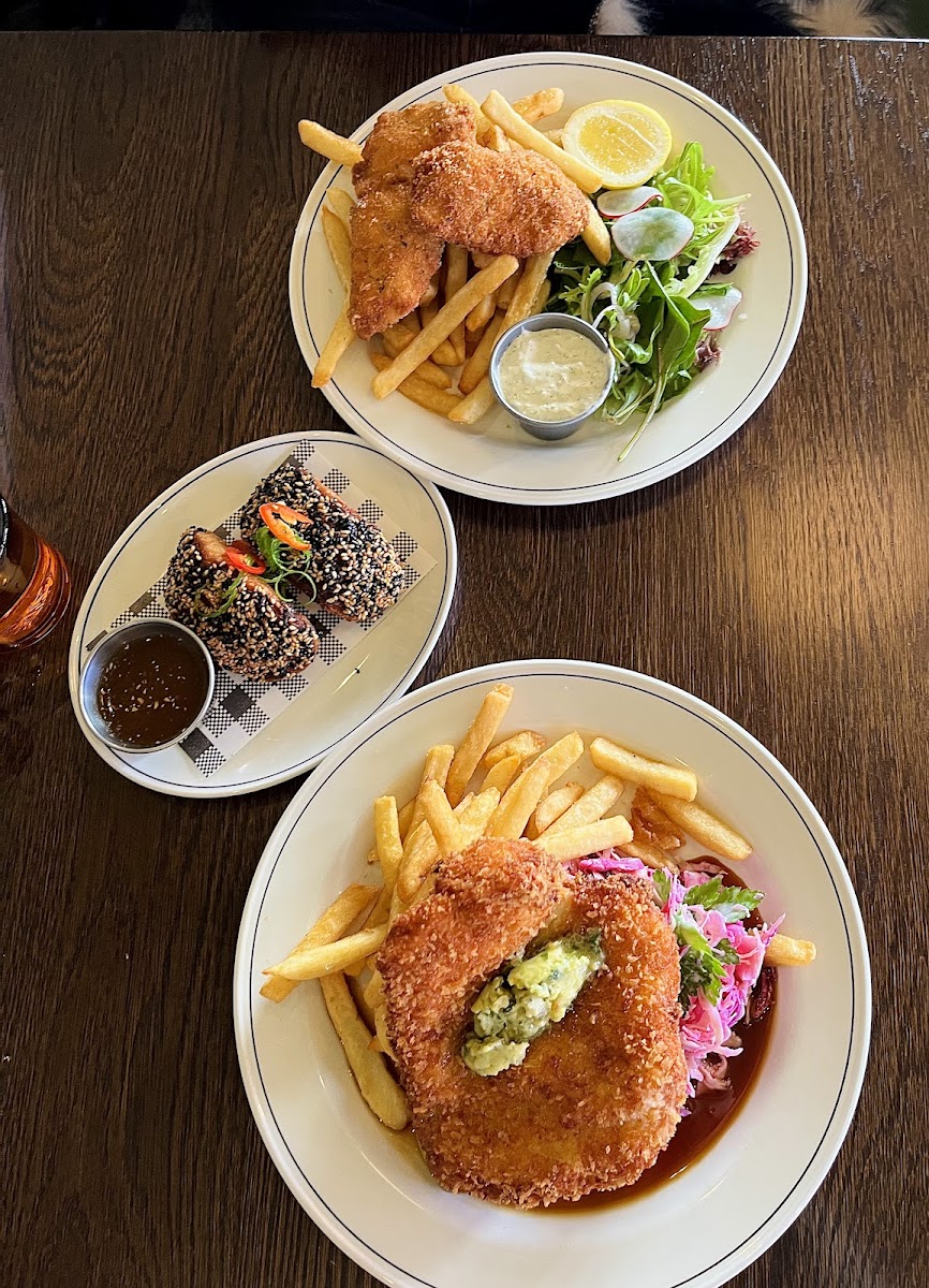 The menu leans into classic pub fare that’s been elevated with care. Dishes like schnitzel stand out for their generous portions and quality, drawing repeat visitors who appreciate the juicy, well-cooked chicken breast. Other hearty options — from pork chops to baked scallops — come presented with attention to detail and consistency. Salad accompaniments and sides, such as chips and coleslaw, serve as reliable staples to round out meals. While some dishes may feel assertive in flavour, there’s enough variety to find something that fits your palate.